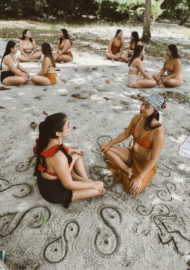 Todo en un espacio seguro, íntimo y sagrado con máximo 12 mujeres.