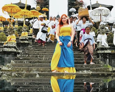 Bali me abrió sus brazos como una madre amorosa que sostiene a su hija: cada templo me acogía, cada baño de sonido sanaba mi alma, cada rincón de la isla me susurraba que podía soltar mis heridas y ser sostenida.
